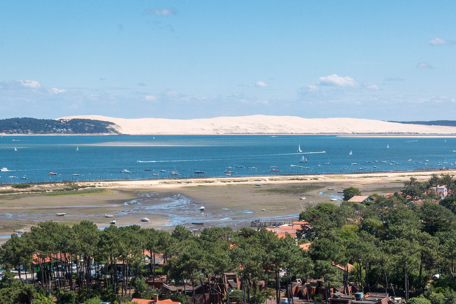 Imaginez, devant vous la Pointe du Cap Ferret qui s’avance dans l’Océan Atlantique. A votre droite ce même océan à perte de vue qui vient finir sa course sur l’immense plage de sable blanc sous forme de vagues et d’écume. Sur votre gauche le Banc d’Arguin, et un peu plus loin la majestueuse Dune du Pilat, surveillant le ballet incessant des bateaux pénétrant dans le Bassin d’Arcachon. Prenez donc le temps de le contempler ce fameux bassin, il est là, devant vous, parsemé de parcs à huitres vivant au rythme des vents et marées. N’oubliez pas également de profiter de la vue sur la forêt domaniale du Cap Ferret.