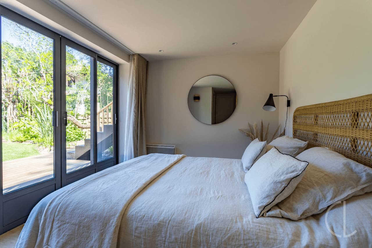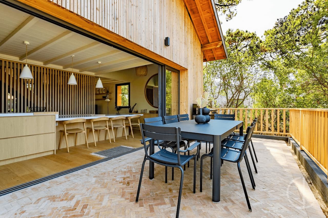 L’ensemble est complété par un jardin paysagé, agrémentés de terrasses en bois et d’une piscine au sel 8X4, chauffée en haute saison. Idéale pour découvrir le Cap Ferret Eté comme Hiver !