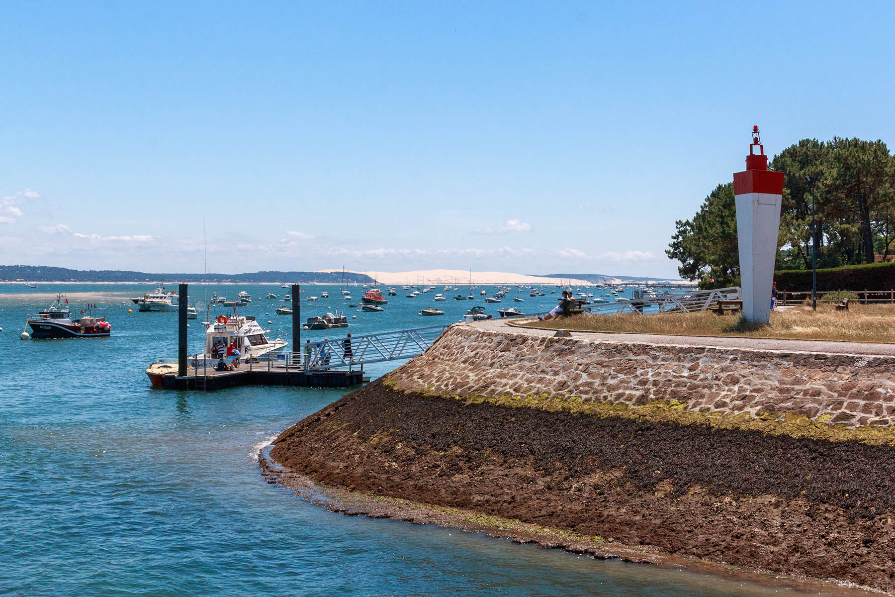La Plage de la Vigne au nord du port est très agréable et idéale pour les enfants avec de nombreuses activités leur étant dédiées et une baignade surveillée. A droite de la plage, au niveau de l’entrée du port, un point de vue offre un panorama superbe sur le Bassin d’Arcachon et la Dune du Pilat.